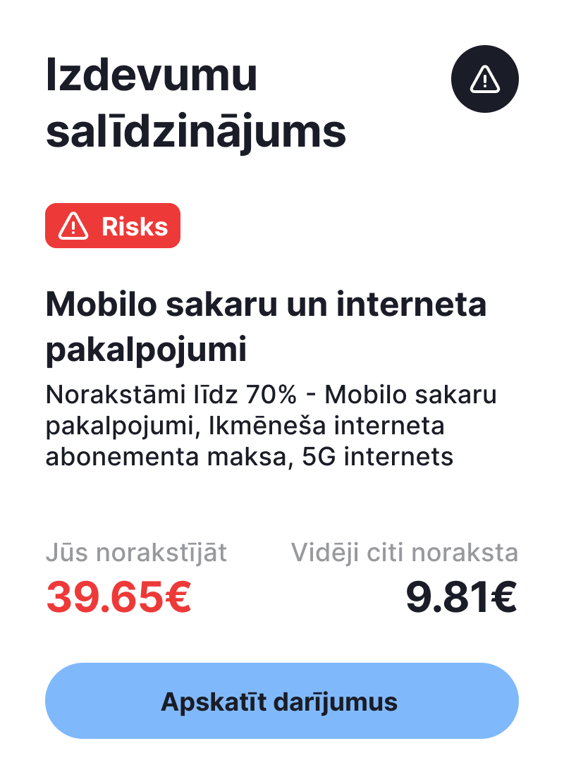 Domāts mazajiem SIA, kas vēlas pārvaldīt izdevumus stratēģiski. Redzi nozares vidējos rādītājus un iespējas ietaupīt.